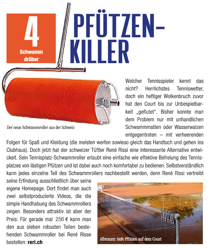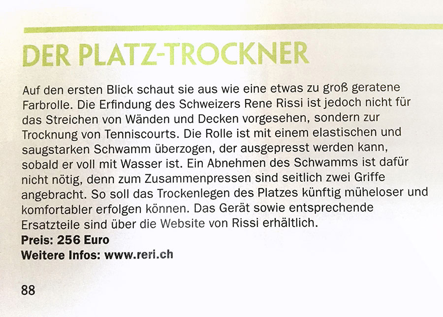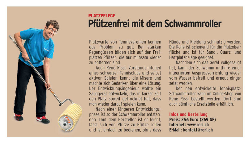 Von der kleinen Saugwalze werden Sie begeistert sein! Ein Tennis-Platz ist in wenigen Minuten von Wasserpfützen befreit und spielbereit.